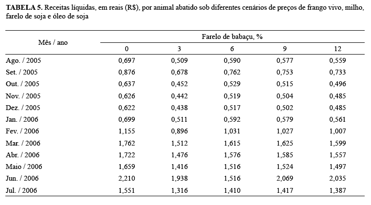 levels of babassu meal inclusion (0, 3, 6, 9 and 12%) in diets with