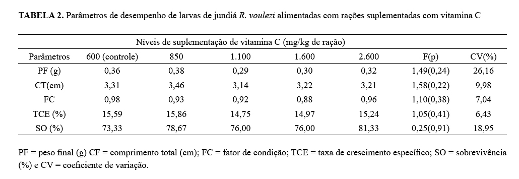 suplementação de vitamina C no desempenho e sobrevivência de larvas de