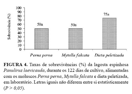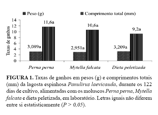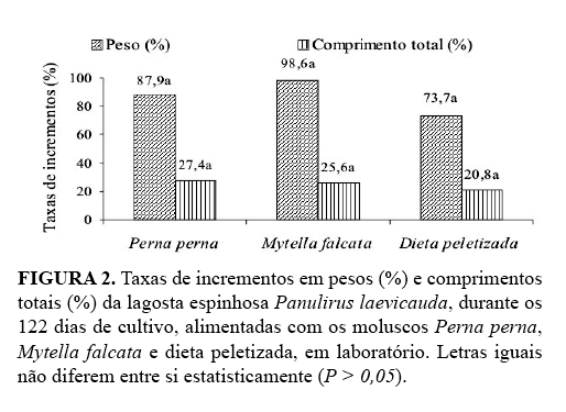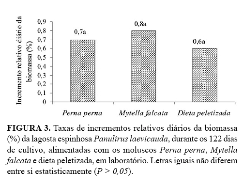 da Panulirus laevicauda, alimentadas com moluscos (Perna perna e Mytella falcata)