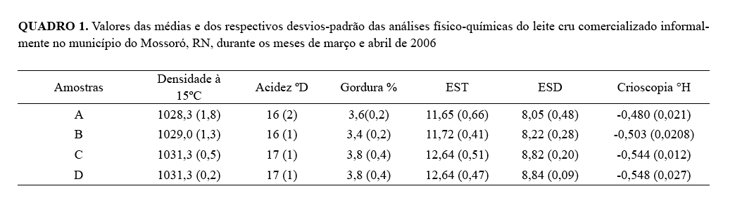 físico-química do leite cru comercializado informalmente no Município de