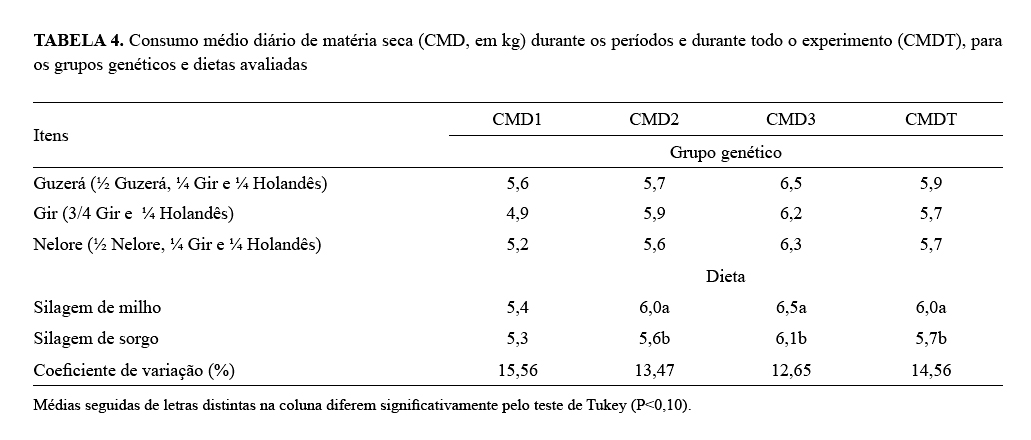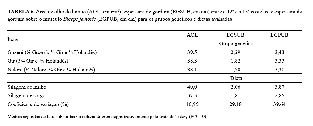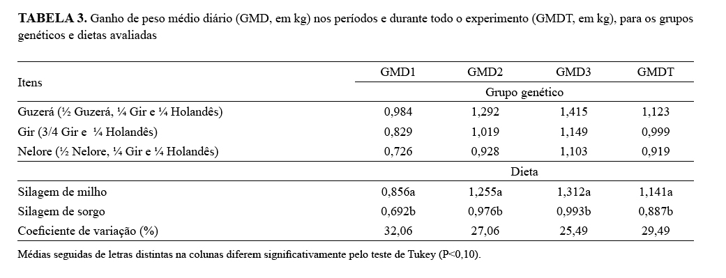 Apesar de os animais alimentados com silagem de milho apresentarem