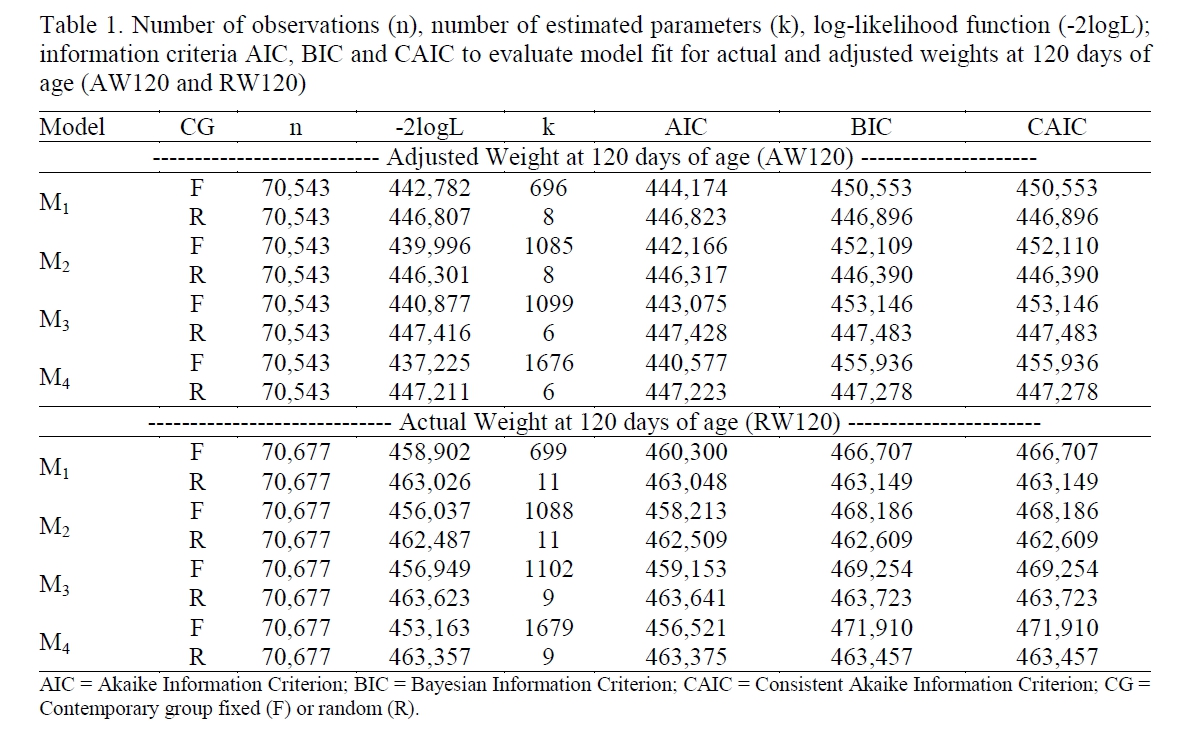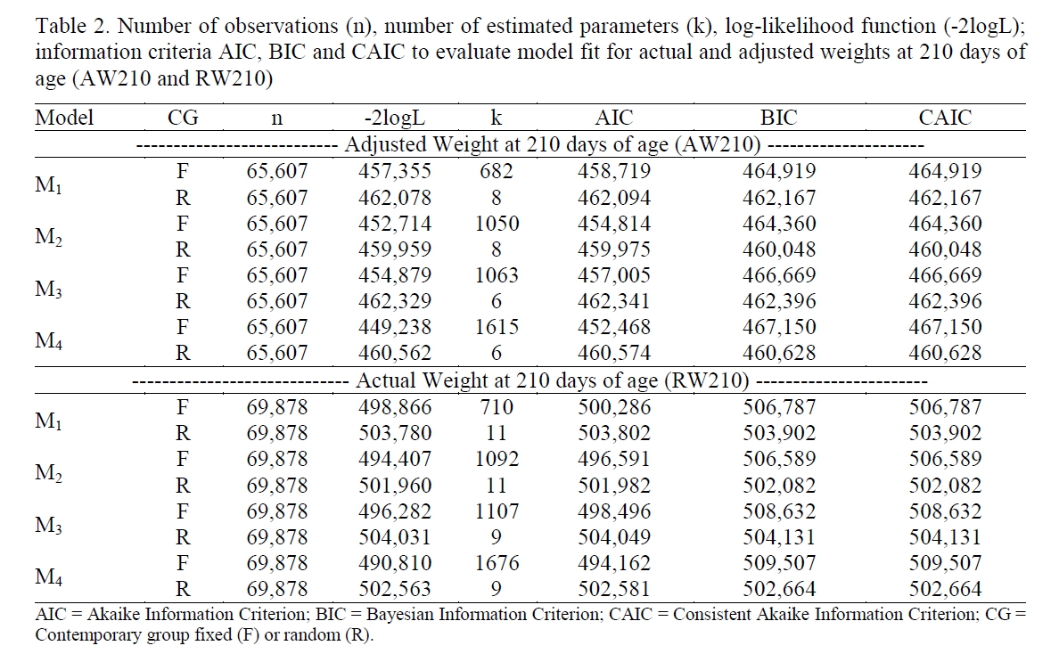 (CAIC). (Co)variance estimates were obtained using a derivative-free restricted