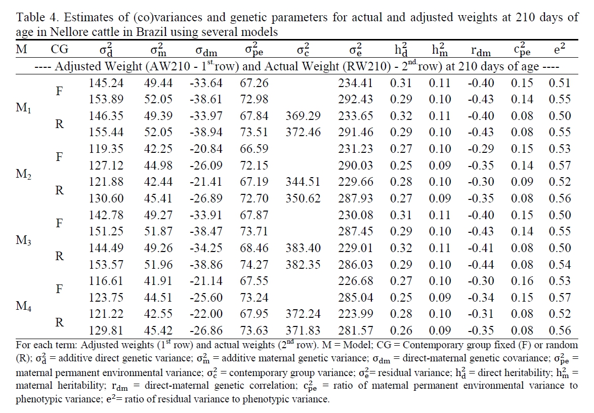 weights at 120 and 210 d of age in Nellore cattle in Brazil.