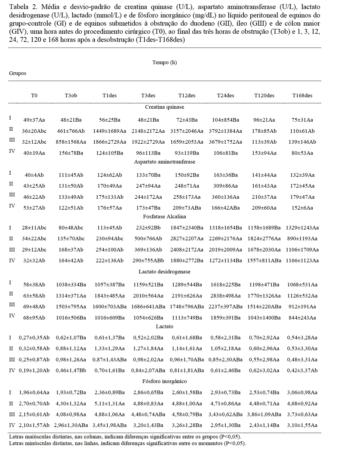 PERITONEAL FLUID BIOCHEMICAL MARKERS OF HORSES SUBMITTED TO INTESTINAL