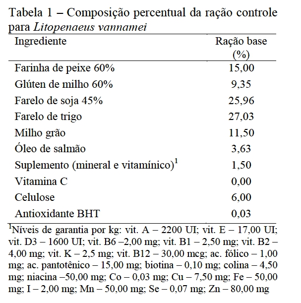 PALAVRAS-CHAVE: Ácido ascórbico; carcinicultura; exigência