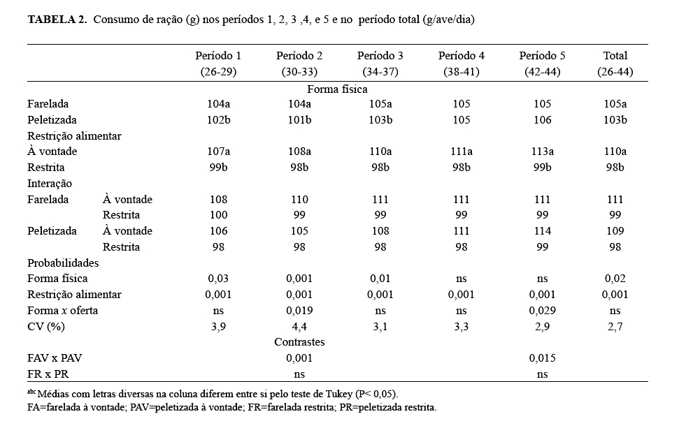 CR no período total (P<0,001) e a ração peletizada propiciou maior