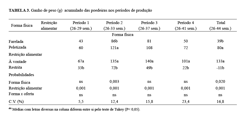 ração na forma peletizada para poedeiras é escassa. O aumento na