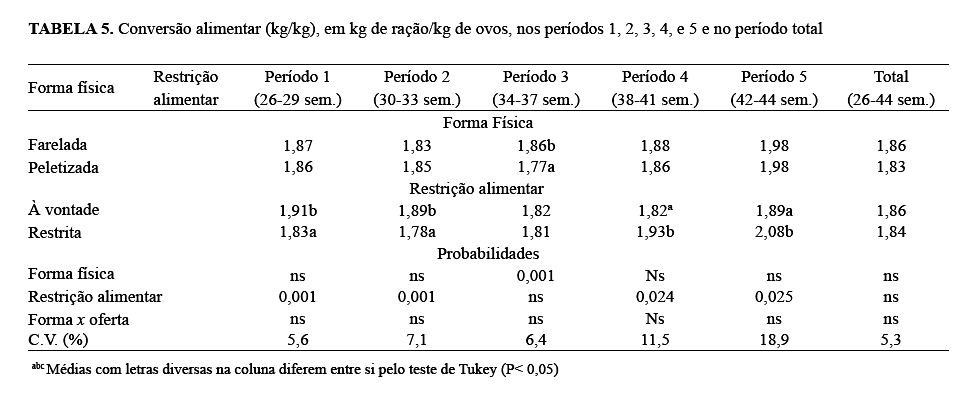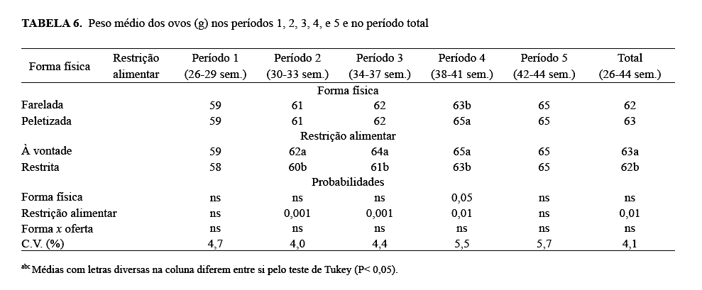 conversão alimentar (CA), produção de ovos (PO), peso médio de ovos