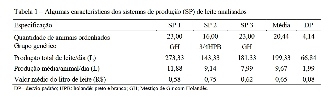 econômicos de sistema de produção de leite na região de Lavras (MG) em