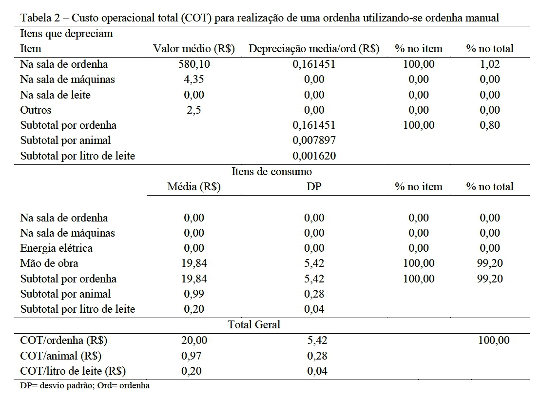 pretendeu-se, ainda: a) estimar o custo de uma ordenha; b) estimar o