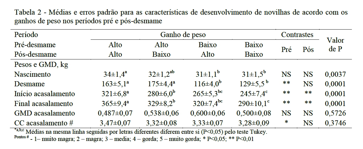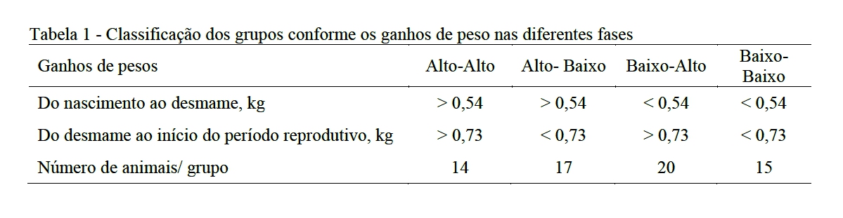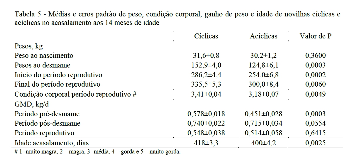 pesos corporais aceitáveis para acasalamento aos 14 meses de idade. Esse fato