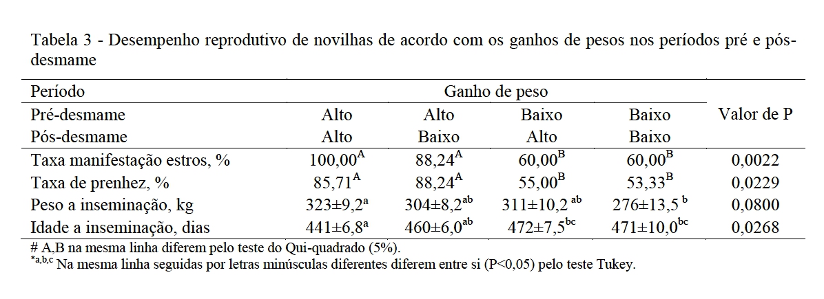 o mesmo no período pós-desmame e durante o período reprodutivo (P>0,05).