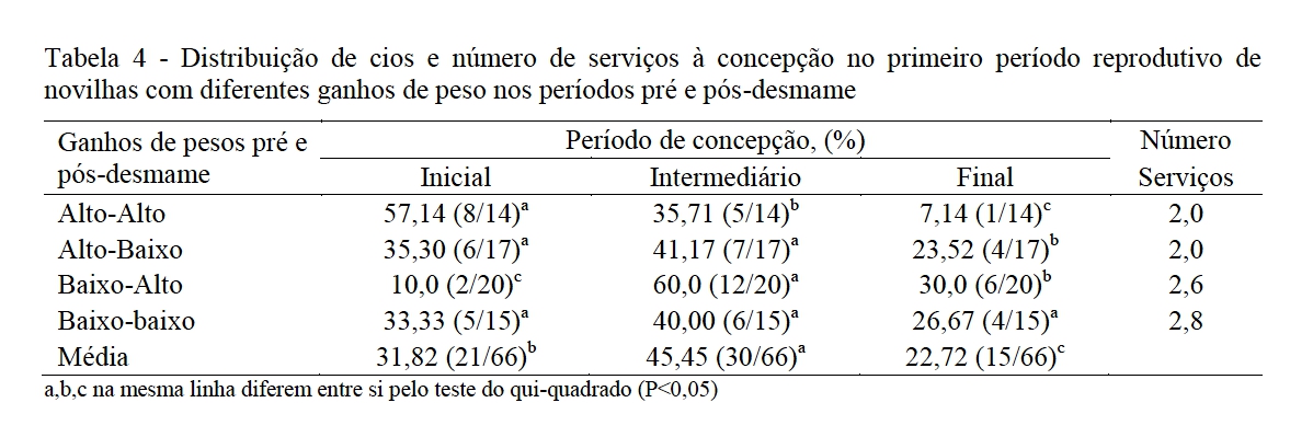 novilhas proporcionaram menores números de serviços para concepção. Esse fato