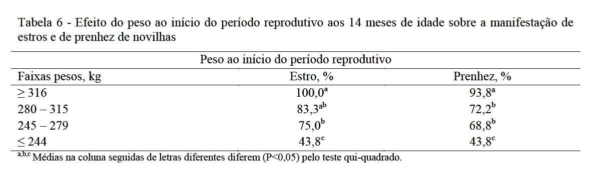 obtida (Tabela 6), confirmando a influência do peso corporal de novilhas ao