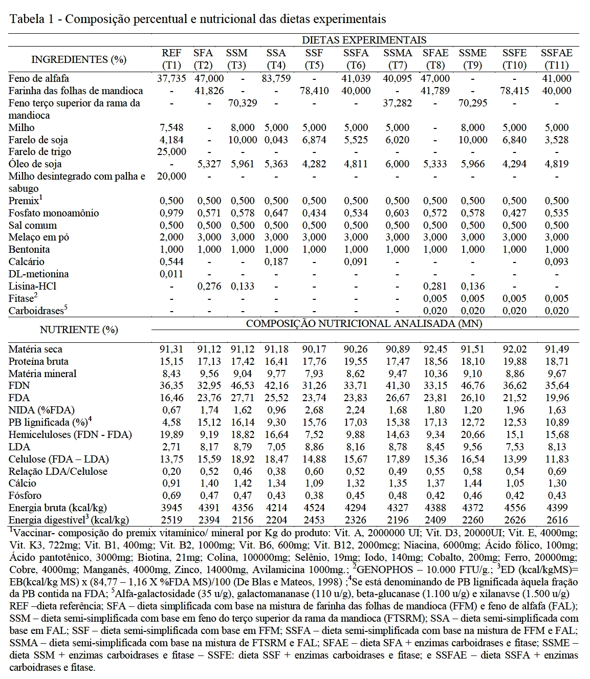 e semi-simplificadas com base em uma forrageira ou na mistura entre elas, com e