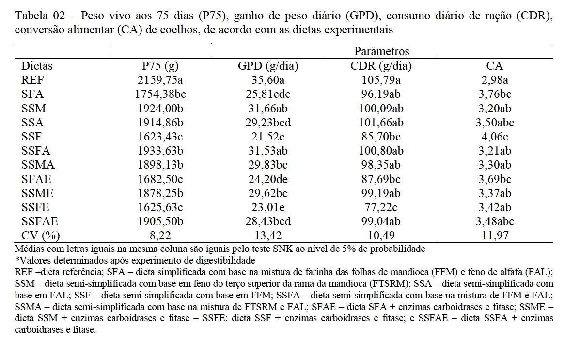 PALAVRAS-CHAVE: cunicultura, desempenho produtivo, rama da mandioca.
