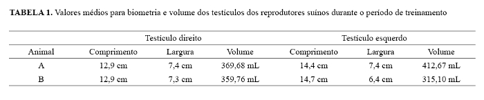 ejaculação. O animal A apresentou um volume de 369,68 mL e 412,67 mL,