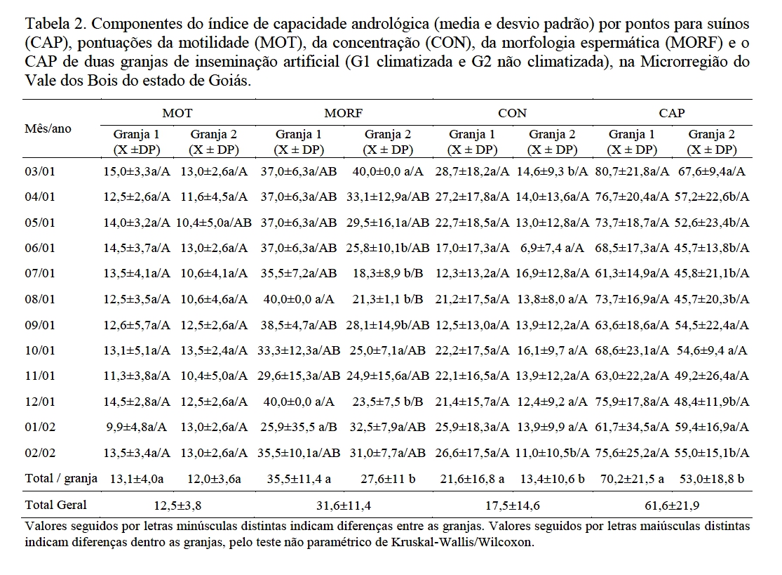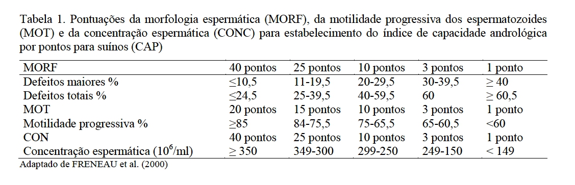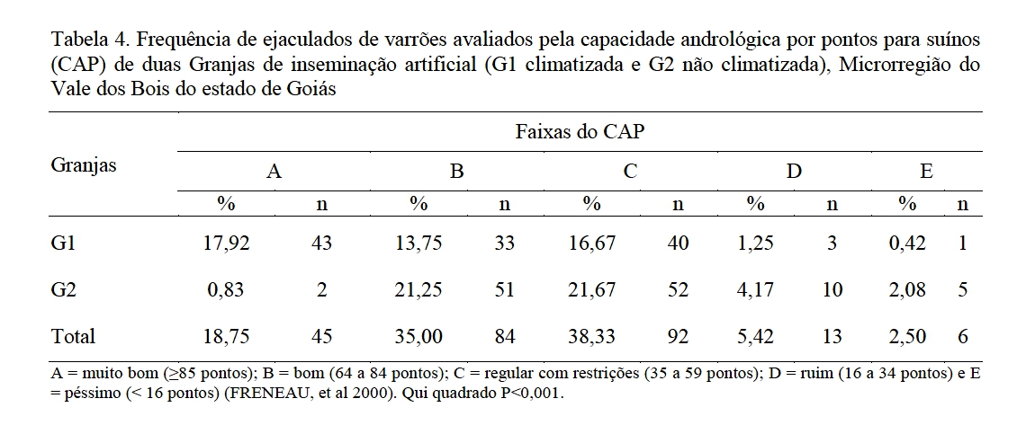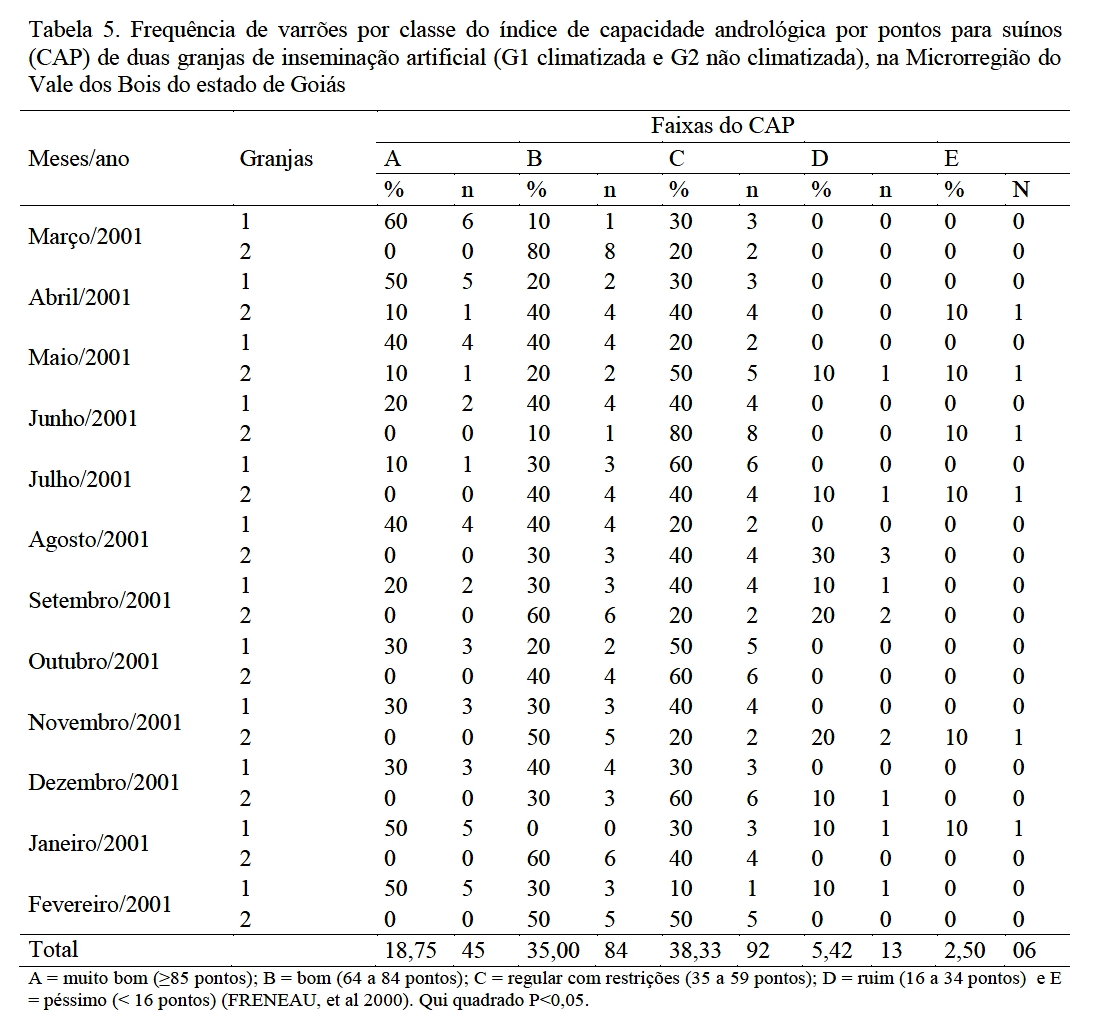 frequências de ejaculados dentro das classes do CAP refletiram as
