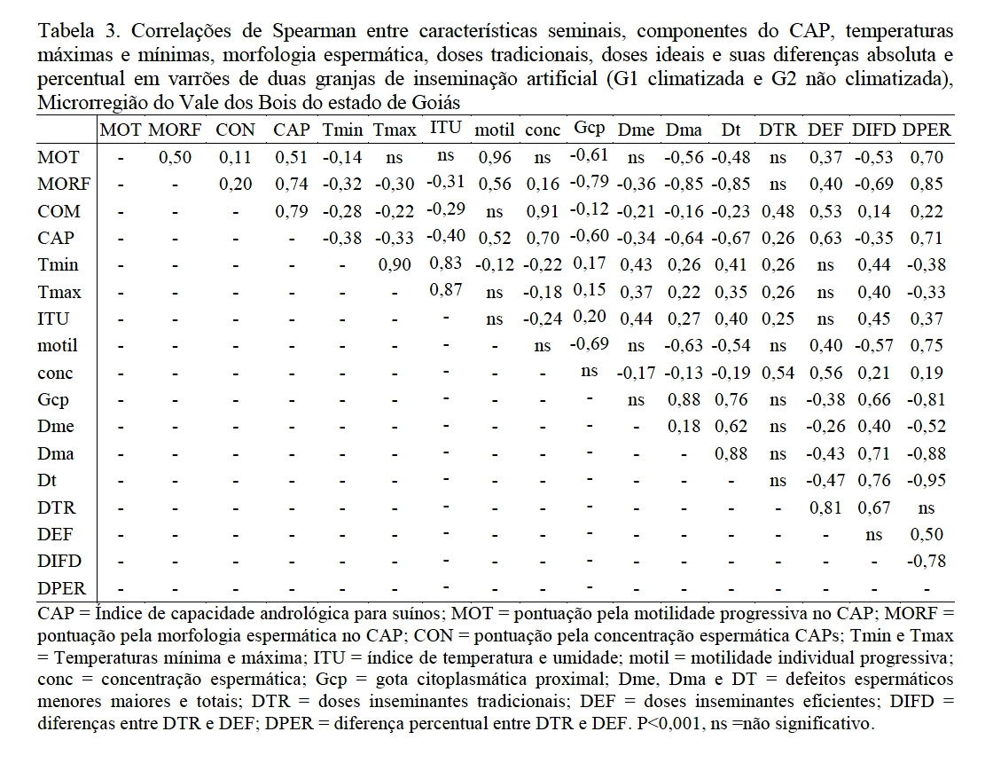 diferenças entre e dentro das granjas. Observaram-se correlações entre