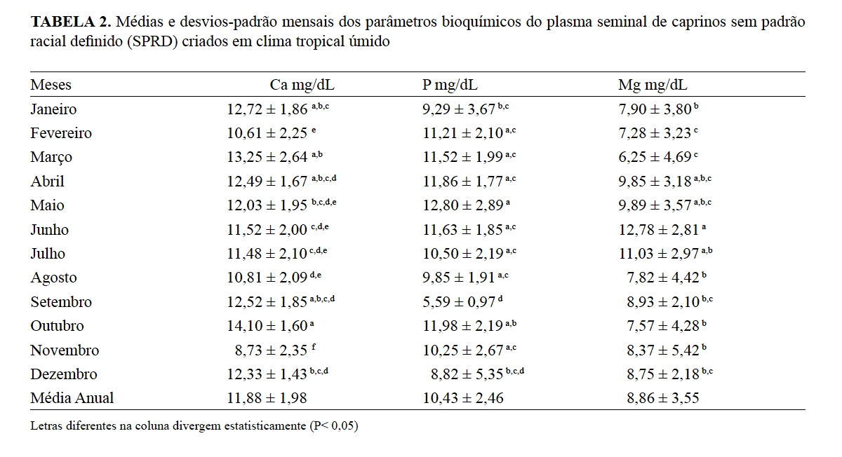 MONTHLY VARIATION IN THE CONCENTRATIONS OF MACROELEMENTS IN THE GOAT SEMINAL PLASMA IN HUMID TROPICAL CLIMATE