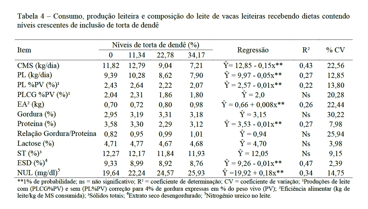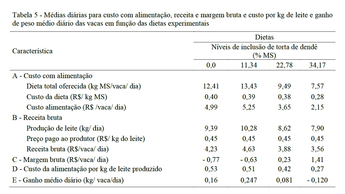 efeito da inclusão de torta de dendê (TD) na dieta de vacas leiteiras