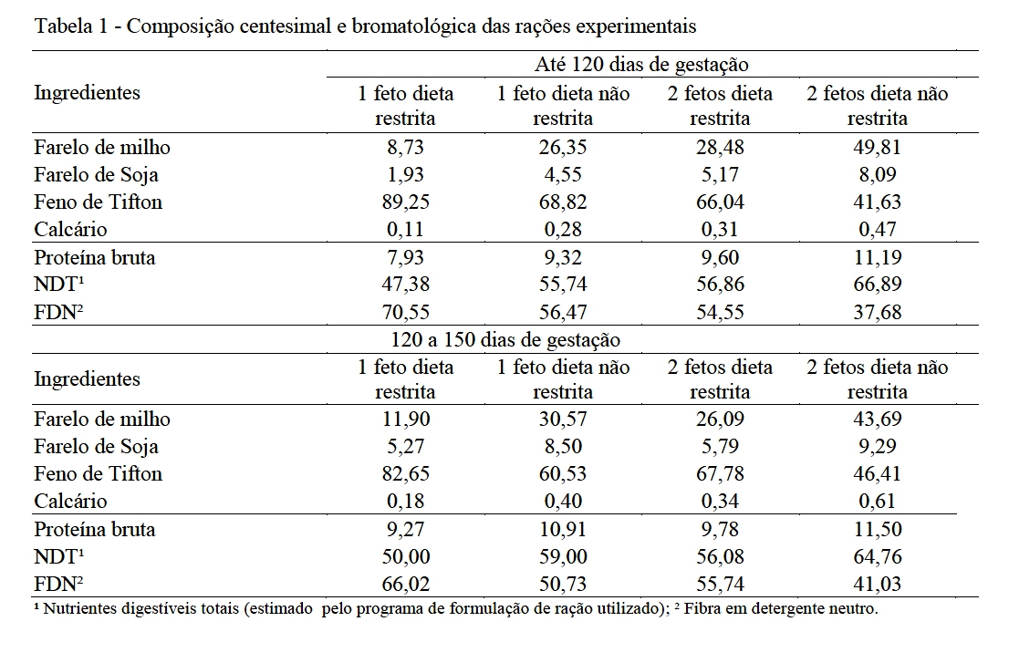 gestantes de dois fetos e alimentação restrita. As ovelhas foram alojadas