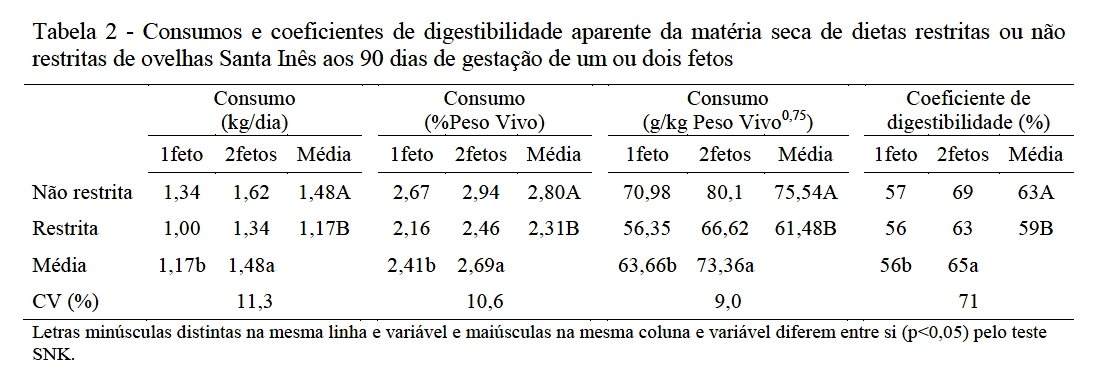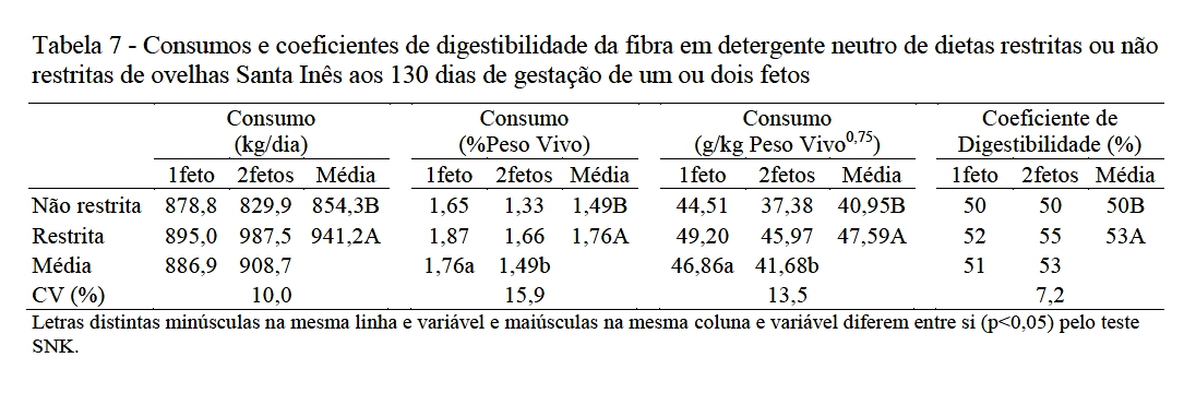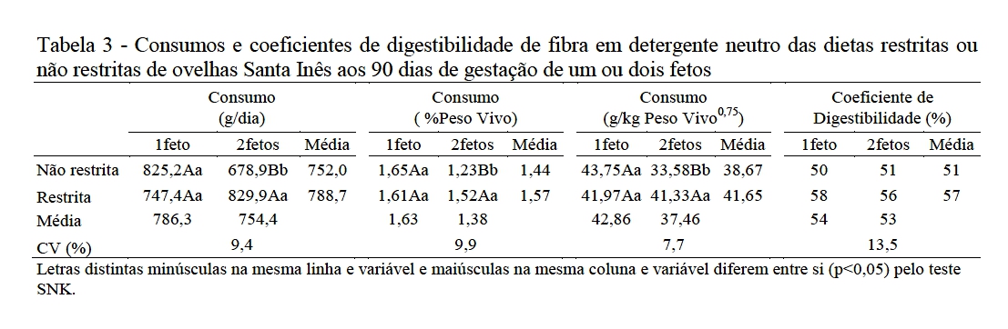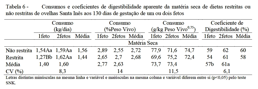 restrição nutricional no consumo e digestibilidade de alguns componentes