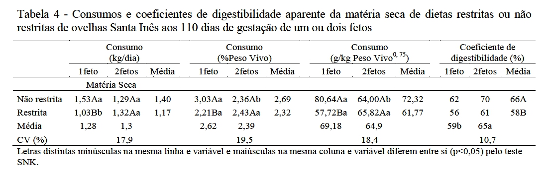 digestibilidade aparente de ovelhas Santa Inês. Ciência e Agrotecnologia,
