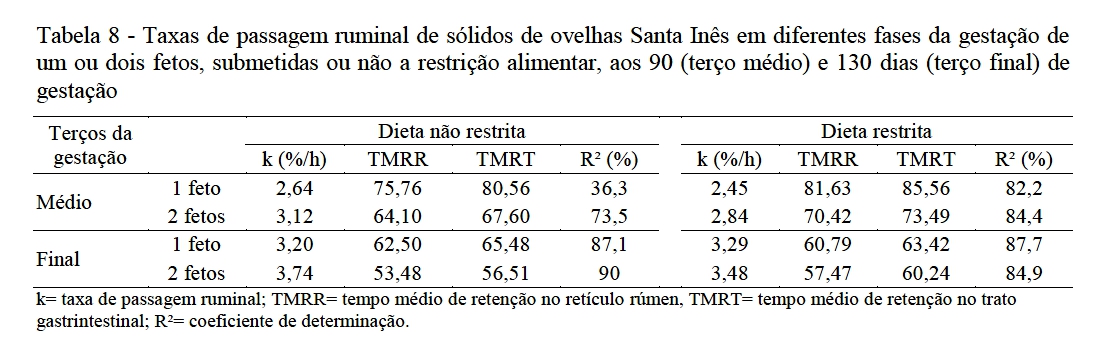 matéria seca. A taxa de passagem ruminal aumenta ao final da gestação.