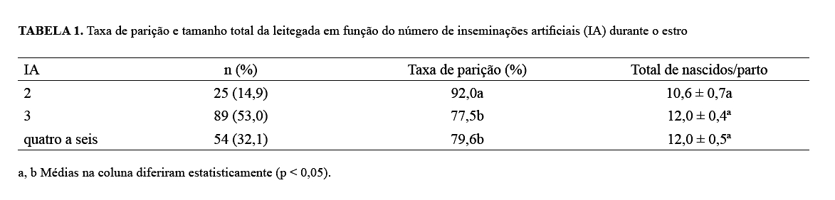 (77,5%) ou quatro a seis IA (79,6%). O tamanho total da leitegada não