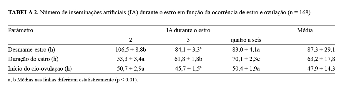 profile and frequency of artificial insemination. Theriogenology, v. 58,