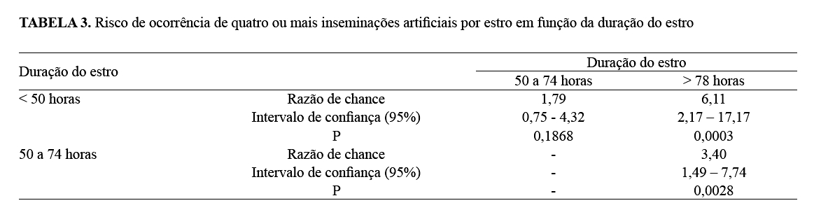 duração do estro superior a 78 horasoras, o risco de receberem quatro a