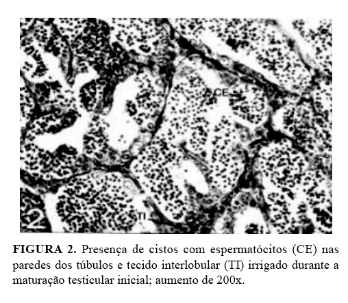Objetivou-se com este trabalho avaliar a maturação testicular da manjuba Curimatella lepidura.