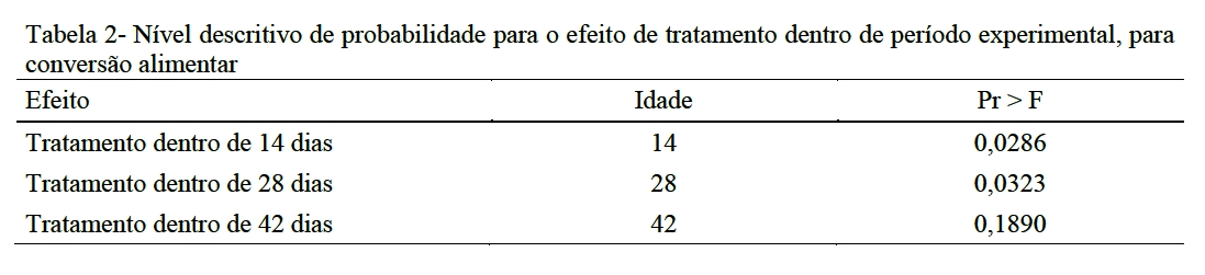 dias após o alojamento dos leitões e finalizado 42 dias depois. O