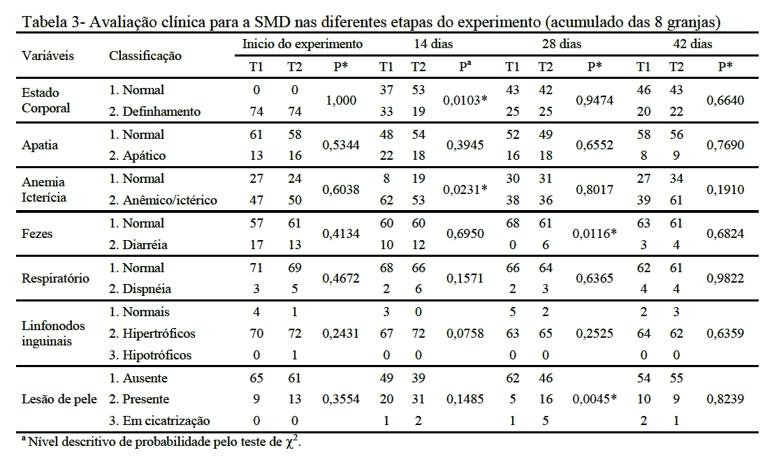 com sinais clínicos da SMD no início do crescimento e terminação.