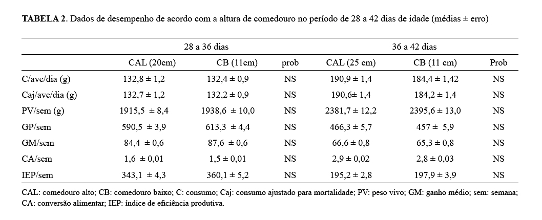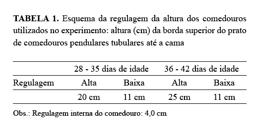 da altura de comedouros tubulares durante o período de 28 a 42 dias de