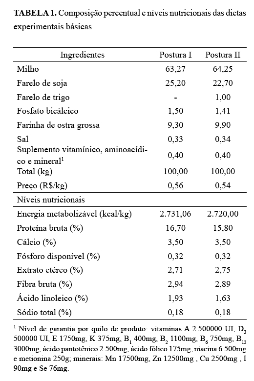 Utilizaram-se quarenta poedeiras por tratamento, sendo cada ave