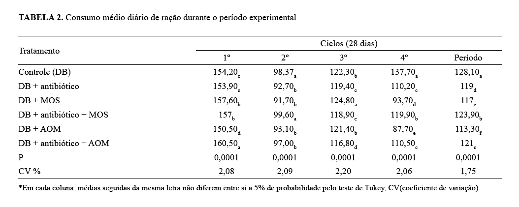 adição de antibiótico, as aves apresentam consumo médio diário de ração