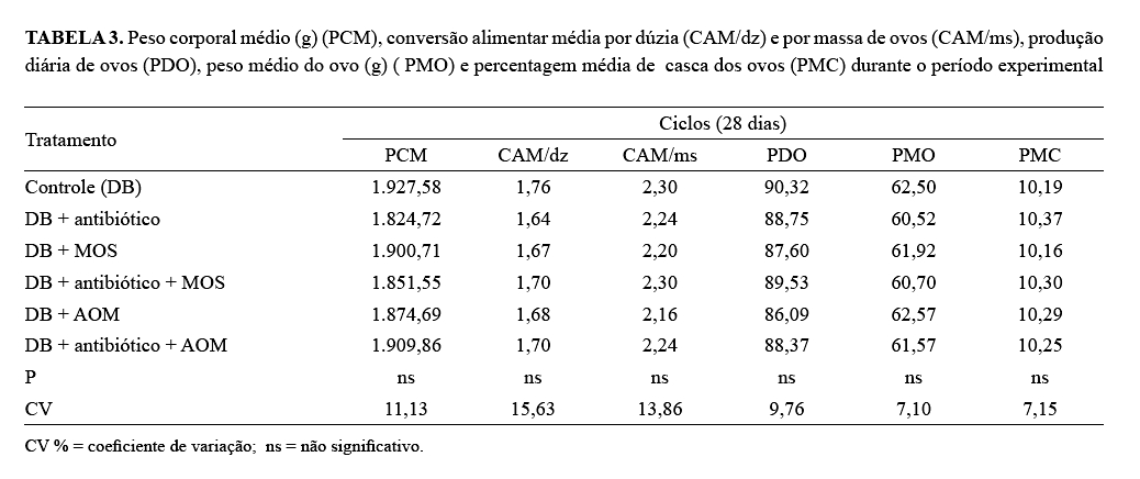 PALAVRAS-CHAVES: Ácidos orgânicos, antibiótico, mananoligossacarídeos, poedeiras, promotores de crescimento.