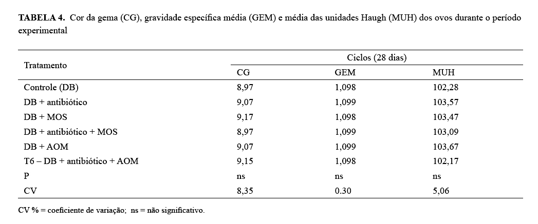 Nos ovos do último dia, avaliaram-se a coloração da gema pelo leque de