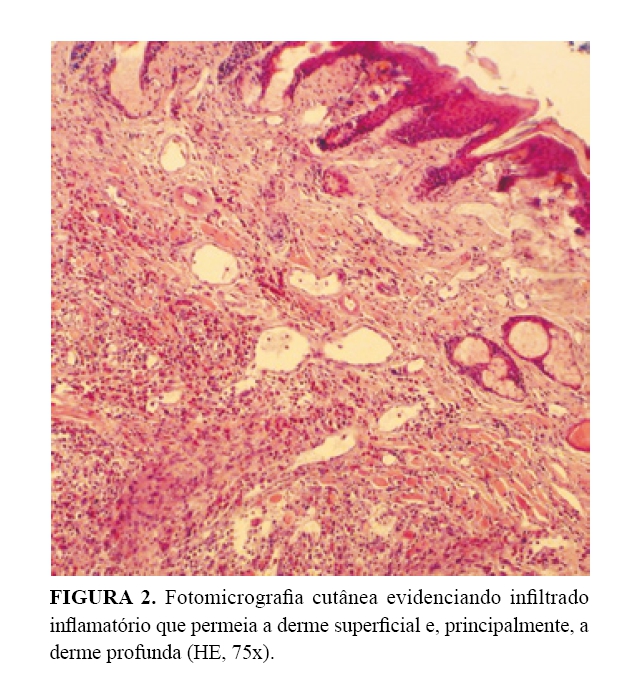 A histopatologia cutânea diagnosticou um quadro de piodermite profunda.