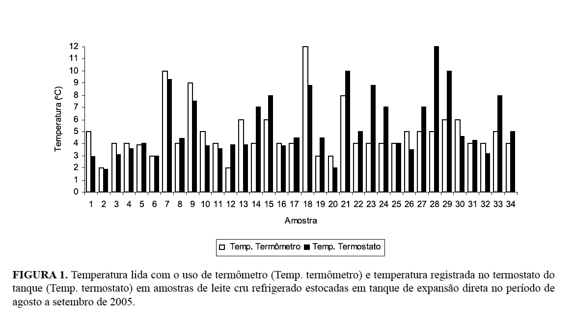 setembro de 2005 coletaram-se 34 amostras de leite cru refrigerado de