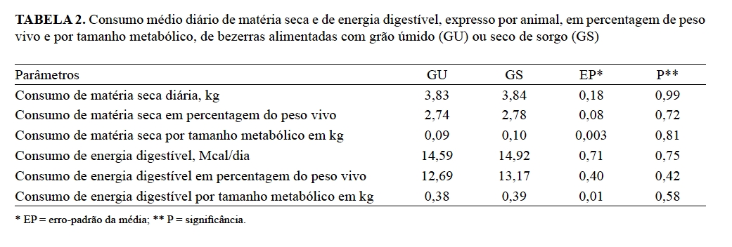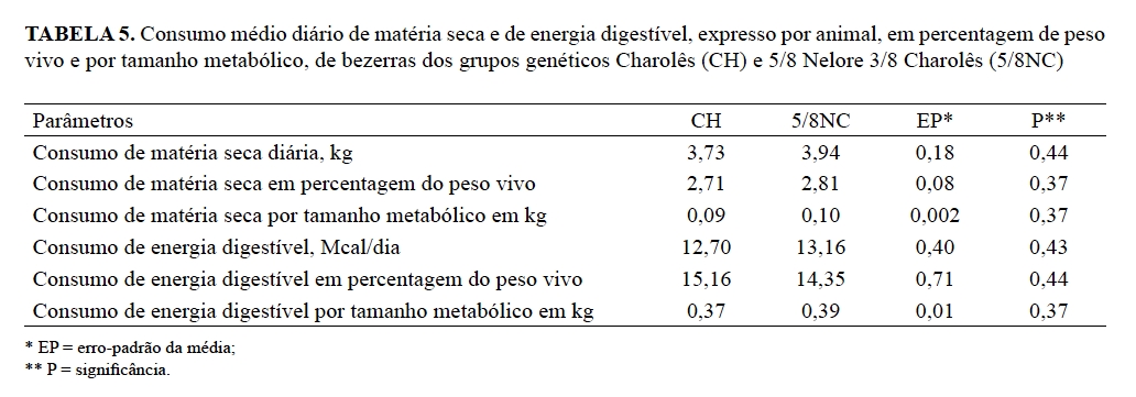 diário de MS (CMS) de 3,83 e 3,84 kg MS/dia, energia