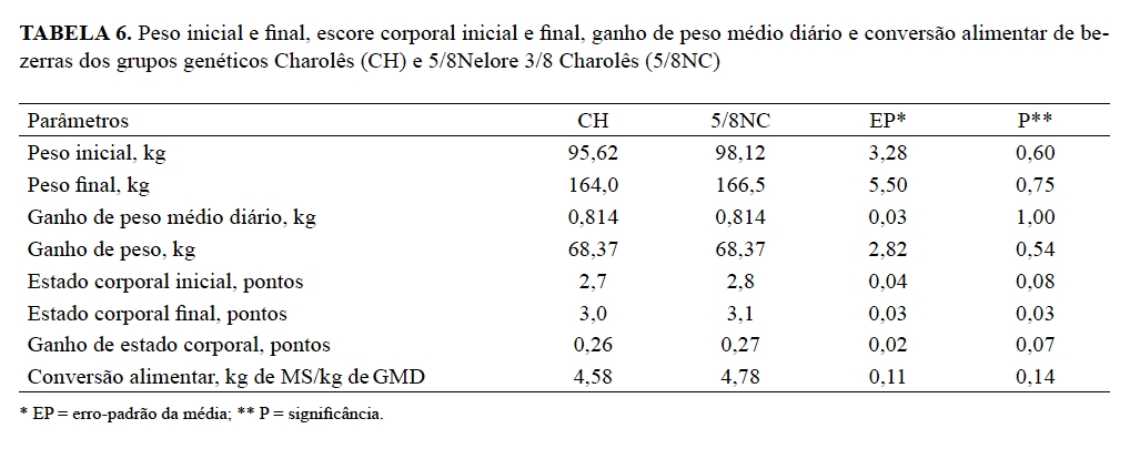 bezerras 5/8NC comparadas às CH apresentaram estado corporal