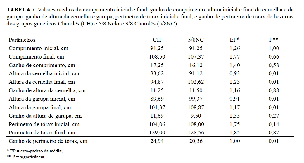 PALAVRAS-CHAVES: Altura de garupa, cernelha, cruzamento, ganho médio diário, perímetro torácico.