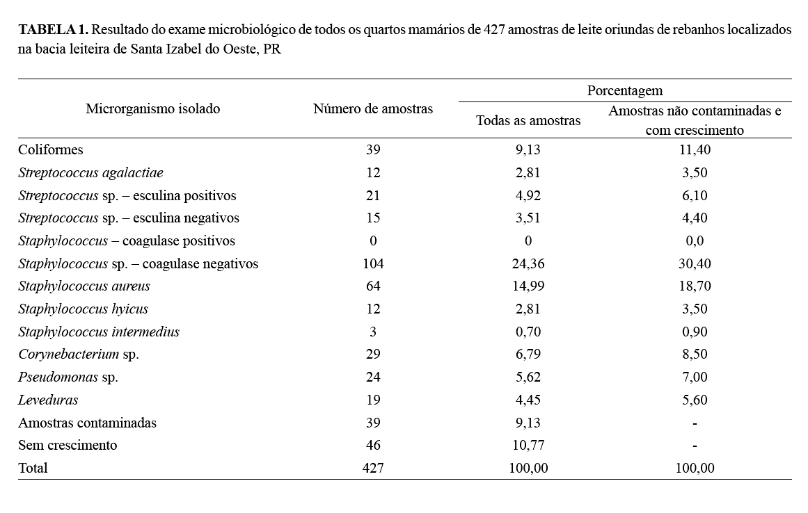 leite do tanque para isolamento de agentes contagiosos da mastite bovina. Pesquisa