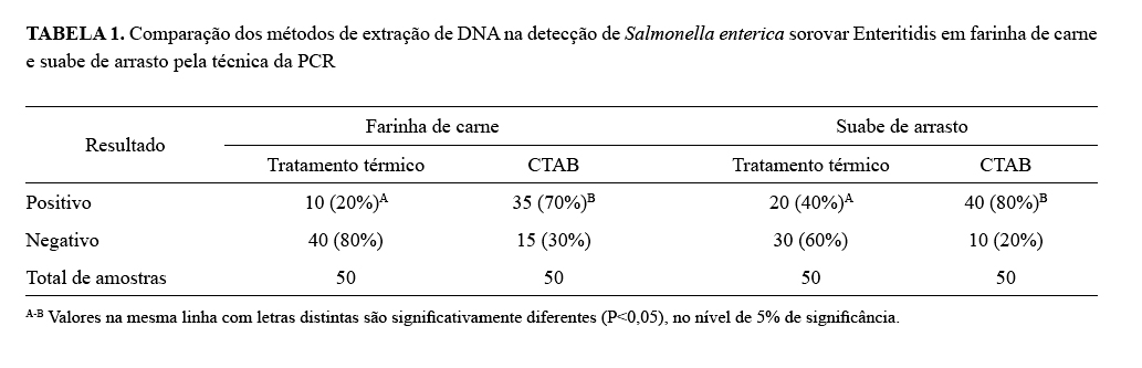 contaminados, foram úteis para detecção de SE. O método de CTAB