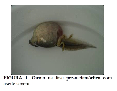 “doença da distensão abdominal” em girinos de criação da espécie Rana tigrina rugulosa, também na China. Os autores observaram quadros clínicos com mortalidade