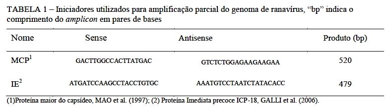 suspeitou da participação de um agente viral pertencente à Família Iridoviridae, gênero Ranavirus, baseados em quadro clínico semelhante ao descrito por WOLF et al.