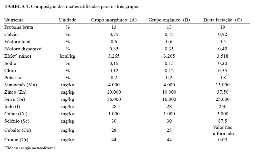 respectivamente, com a mesma quantidade de cada micromineral, baseado